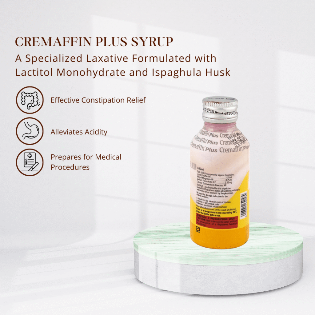 Short-Term Use: Cremaffin Plus Syrup provides a quick and effective short-term solution for constipation and acidity.