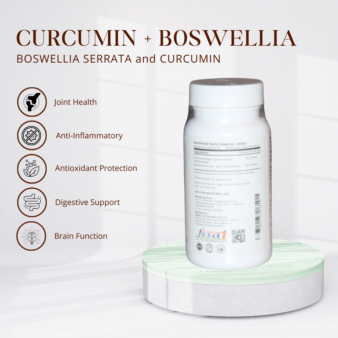 Curcumin + Boswellia offers a holistic approach to health, addressing inflammation, oxidative stress, and various health concerns. Its potent combination of curcumin and boswellia provides natural relief from pain, supports joint health, and promotes overall wellness, allowing individuals to lead active and fulfilling lives.