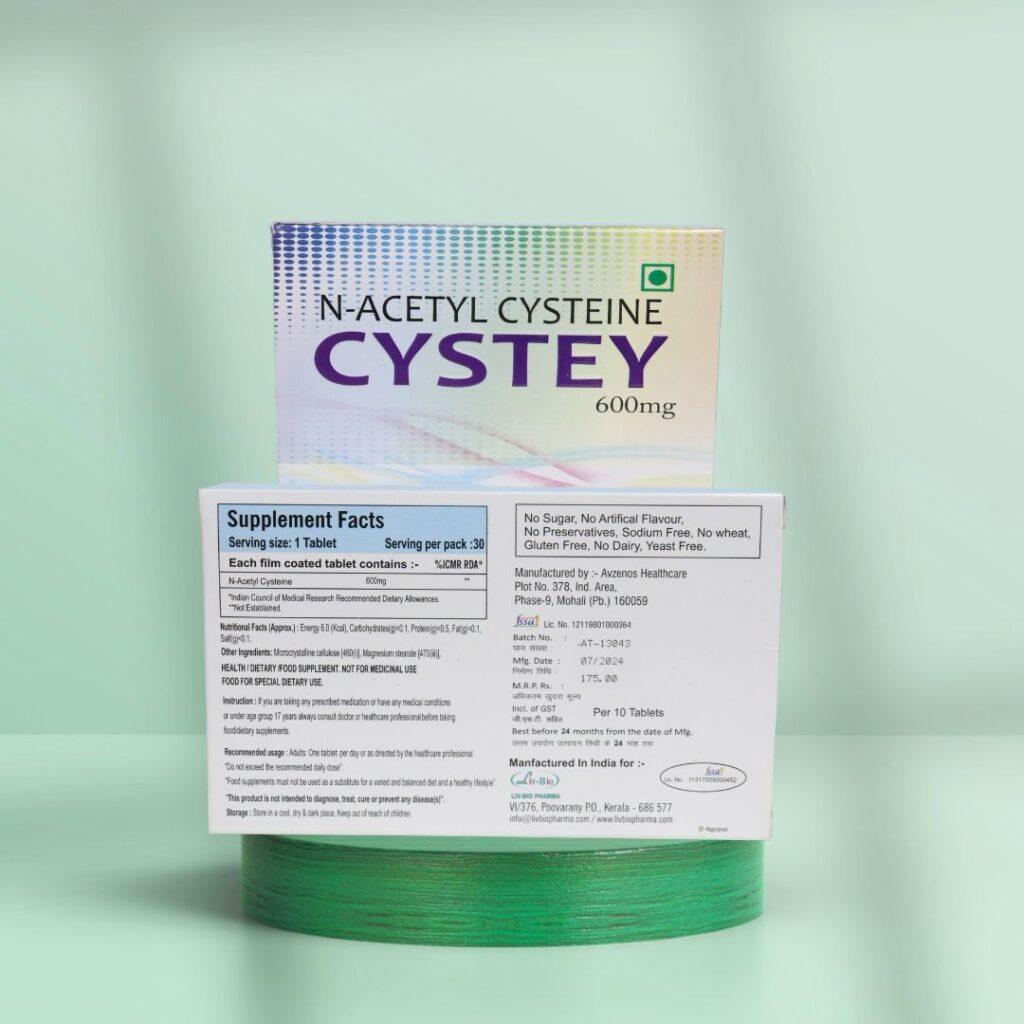 Cystey 600mg Tablet is a pharmaceutical-grade N-Acetylcysteine formulation used to support respiratory function and antioxidant defense. It works by breaking down thick mucus secretions in the airways, making it easier to breathe in conditions like bronchitis, COPD, and asthma. NAC also helps replenish glutathione—a key antioxidant in the body—thereby protecting cells from oxidative damage and supporting liver function. In some formulations, Cystey may also include trace minerals like Zinc, Selenium, and Molybdenum, enhancing its immune-supportive and detoxifying benefits.
