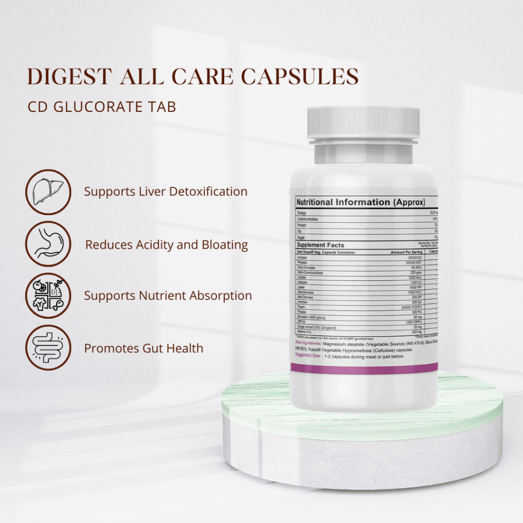 Reduces Acidity and Bloating: By breaking down food more effectively, the capsules help alleviate symptoms of acidity, bloating, and indigestion.