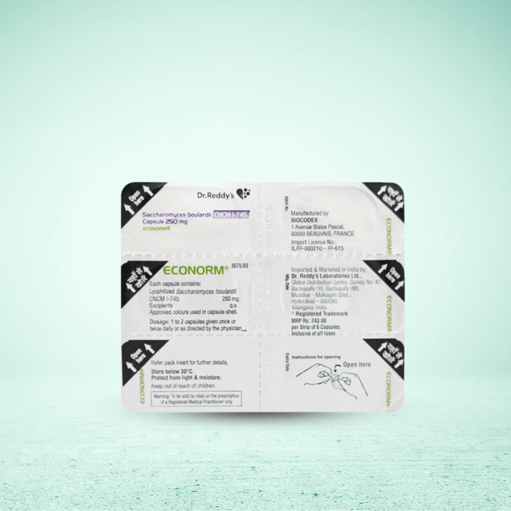 Tolerance to Antibiotics: Econorm Capsule improves tolerance to antibiotics, reducing the risk of antibiotic-associated diarrhea and other gastrointestinal side effects.