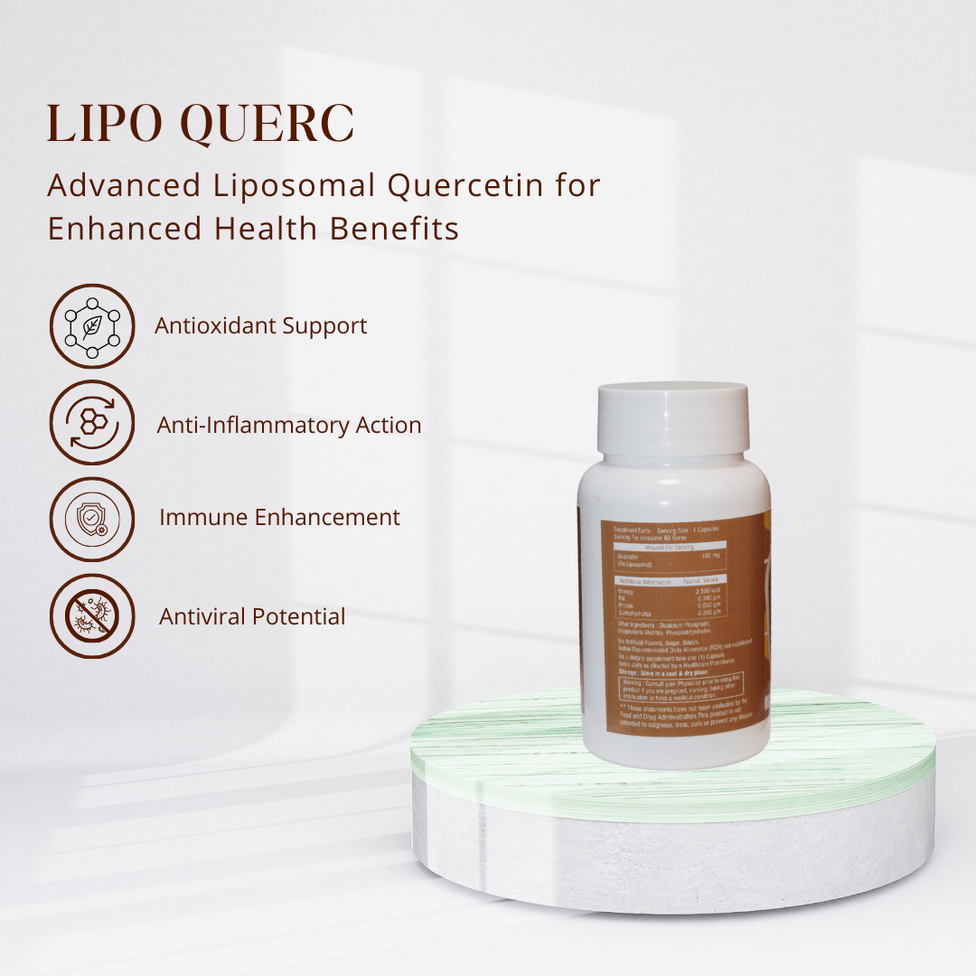 Lipo Querc harnesses the potential of quercetin, a bioactive flavonoid known for its extensive health benefits, encapsulated in a liposomal form to ensure optimal absorption and bioavailability. Each capsule contains 100mg of liposomal quercetin, making it highly effective in reaching the bloodstream and delivering its beneficial properties where they are needed most.