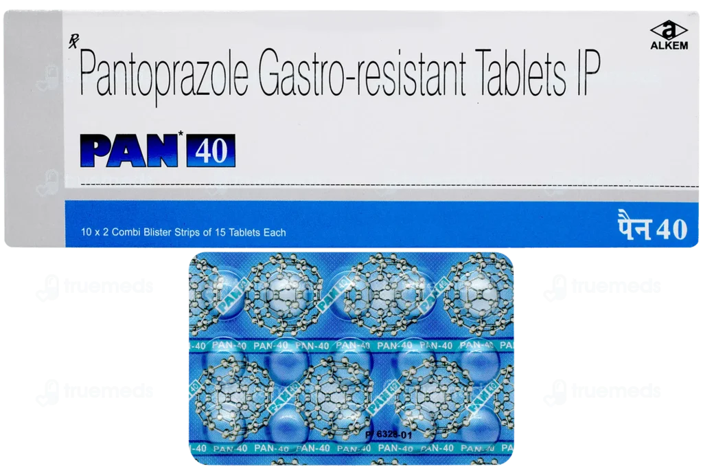 PAN 40 mg contains Pantoprazole, a medication that decreases stomach acid by blocking the proton pump in the gastric lining. It is commonly prescribed for conditions such as gastroesophageal reflux disease (GERD), Zollinger-Ellison syndrome, and peptic ulcers. It provides relief from heartburn, acid reflux, and associated discomfort.
