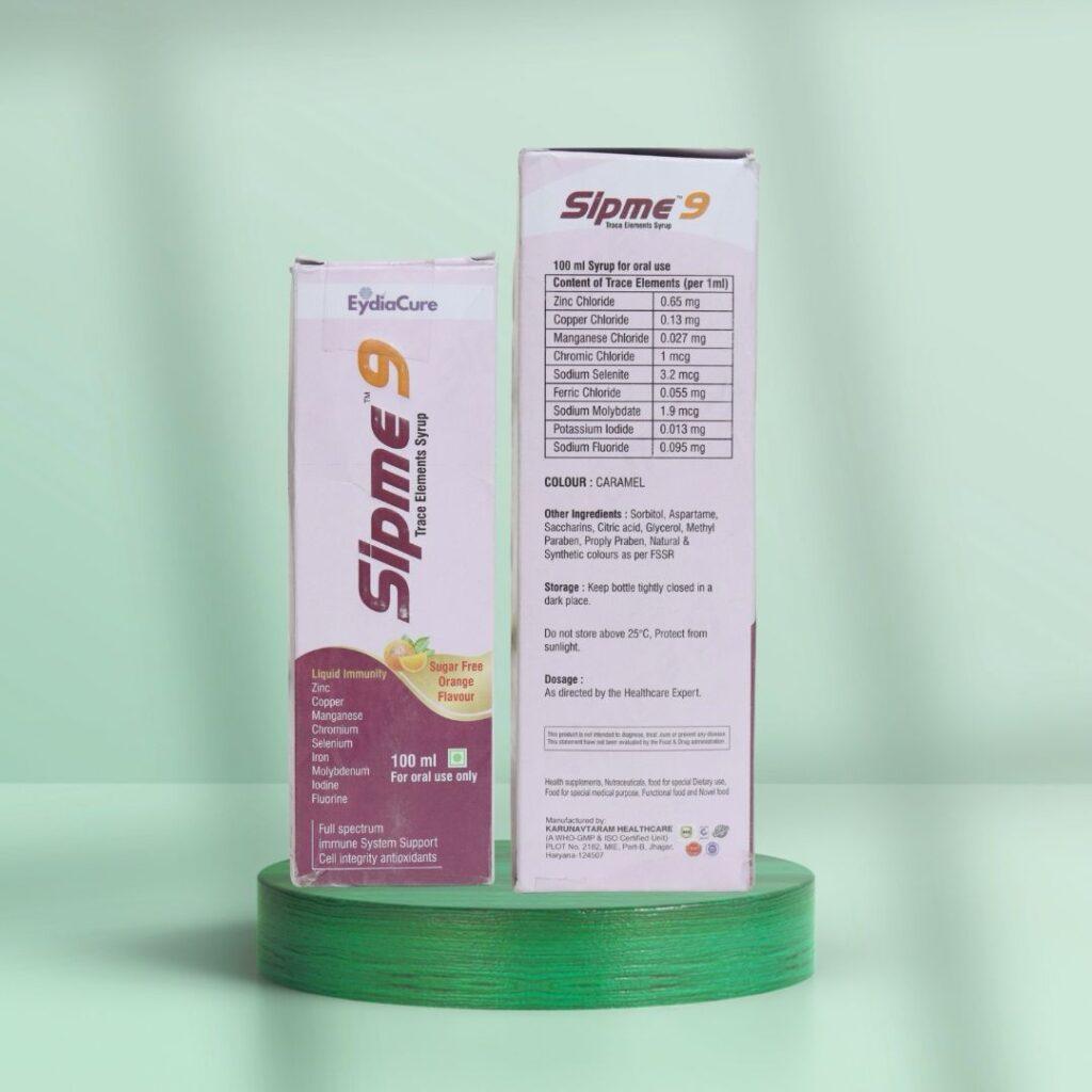 Sipme 9 is a trace elements syrup designed to support immune function, enhance overall well-being, and provide essential micronutrients. This sugar-free orange-flavored supplement contains a blend of nine vital trace elements—zinc, copper, manganese, chromium, selenium, iron, molybdenum, iodine, and fluorine. These elements play a crucial role in cellular metabolism, enzymatic reactions, and immune system support.