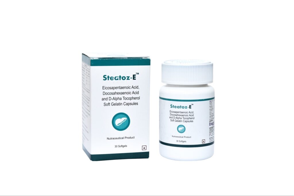 Steatoz-E is a nutraceutical supplement containing Eicosapentaenoic Acid (EPA), Docosahexaenoic Acid (DHA), and D-Alpha Tocopherol (Vitamin E) in soft gelatin capsules. These essential nutrients support cardiovascular health, brain function, liver health, and overall well-being. The combination of Omega-3 fatty acids and Vitamin E provides antioxidant and anti-inflammatory benefits, making it ideal for individuals managing conditions like fatty liver, heart disease, and neurological disorders.