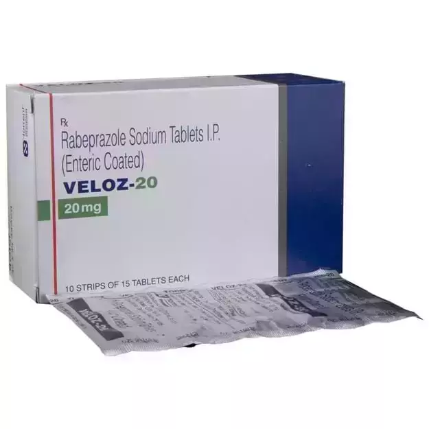Veloz 20 Tablet (Rabeprazole 20mg) is a proton pump inhibitor that reduces stomach acid production, treating acid reflux, peptic ulcers, and Zollinger-Ellison syndrome.